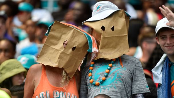 • Dolphins’ chances of going 0-16 • Miami’s ineptitude is testing oddsmakers • How are Dolphins handling the losing? • With draft picks galore, pressure’s on the GM • Projected draft order: Who has No. 1 pick? • More Dolphins coverage »